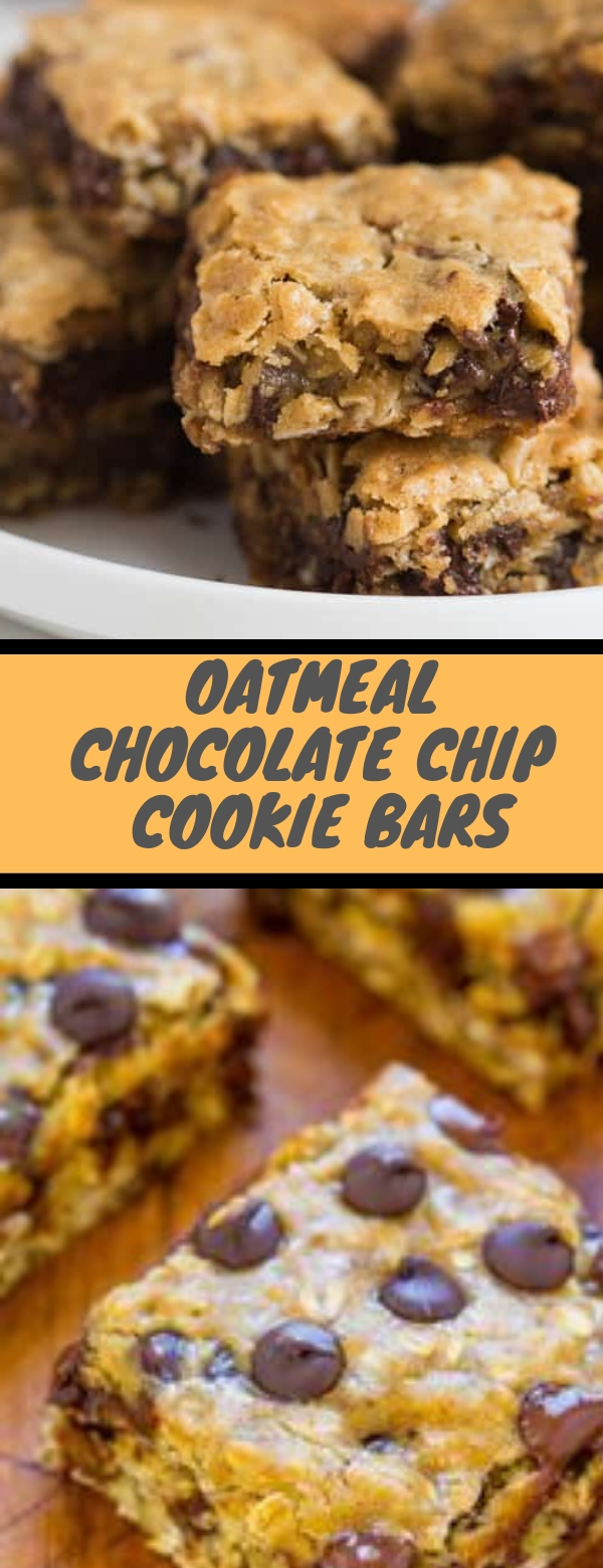 Oatmeal Chocolate Chip Cookie Bars are chewy and thick and also a cure for potlucks, a crowd and parties. They have the taste you enjoy from a chocolate chip cookie in to bars that are yummy and simple!